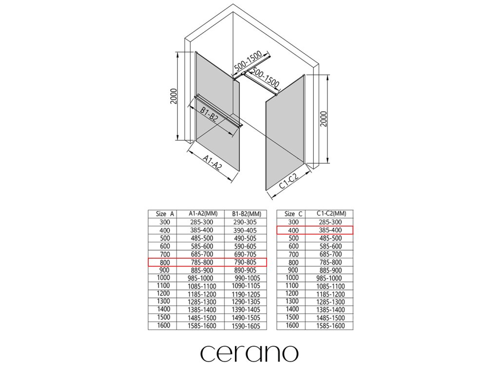Ezen a sorozaton belül széles méretválasztékot kínálunk, hogy kielégítsük ügyfeleink különböző igényeit. Minden Cerano zuhanykabin, ajtó és paraván teljesen kompatibilis az azonos méretű Cerano zuhanytálcákkal , biztosítva a zökkenőmentes telepítést és a tökéletes összehangolást. Ezenkívül a zuhanykabin rugalmasan beszerelhető - akár a hozzá illő zuhanytálcára, akár közvetlenül a padlóra, az Ön preferenciáitól és a fürdőszobai lehetőségektől függően.