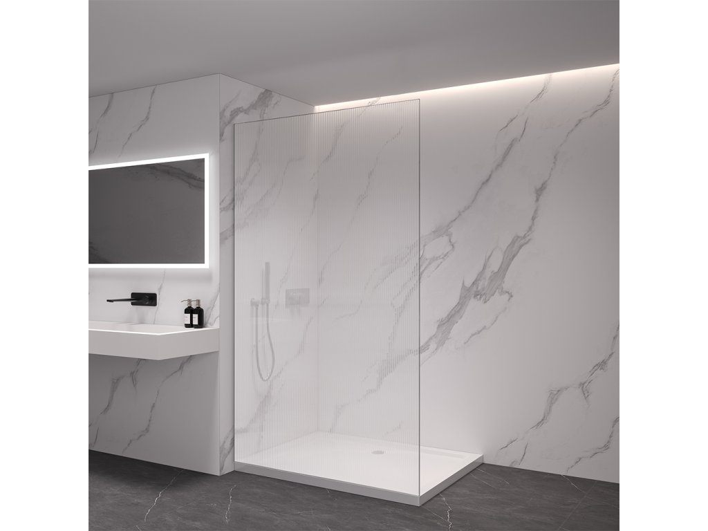 A zuhanykabin kialakítása lehetővé teszi a rejtett üvegezést zavaró merevítők nélkül, a teljesen vagy részben süllyeszthető profilok (14 mm, csempébe vagy térkőbe) segítségével . Az eredmény egy letisztult és elegáns megoldás , amely kiemeli a fürdőszoba modern megjelenését , és maximális vizuális világosságot biztosít a térben .