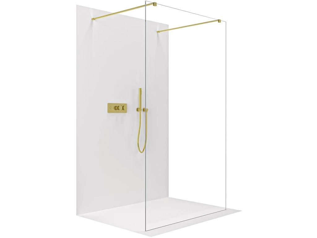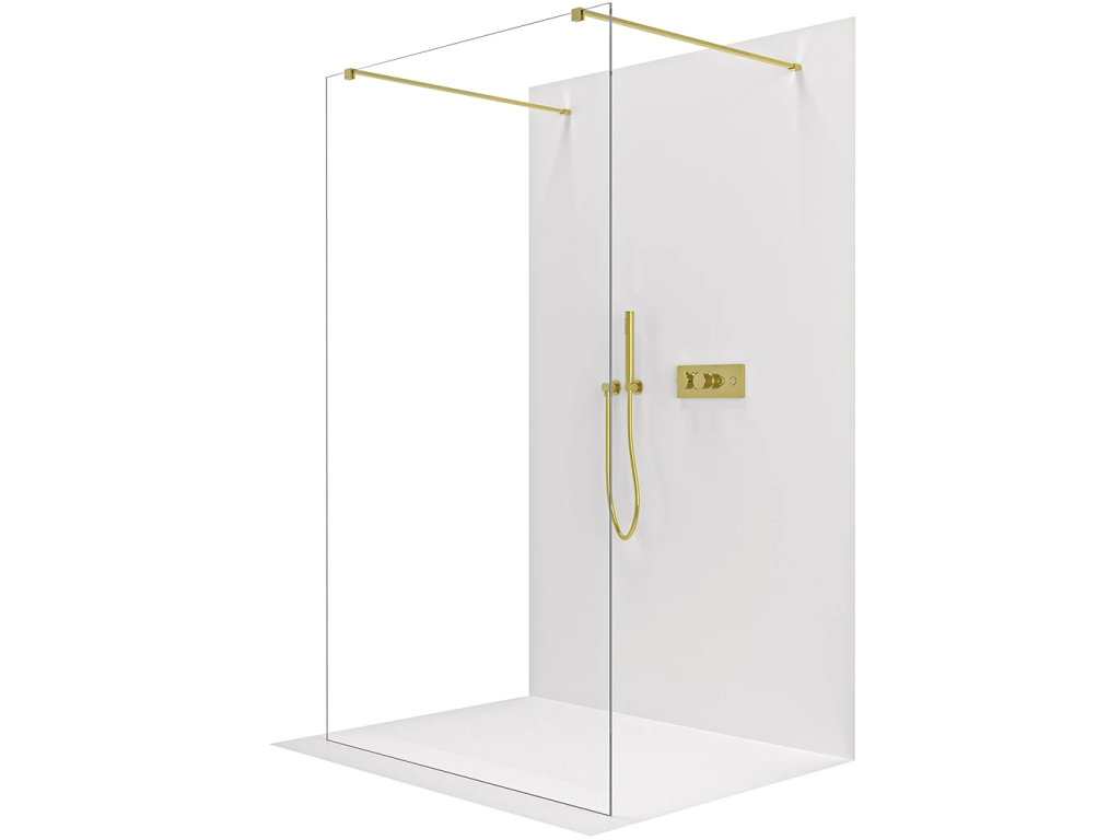 CERANO - Zuhanykabin Onyx Duo bal/jobb - 8 mm - négyzet alakú tartó - arany, átlátszó üveg - 50x200 cm