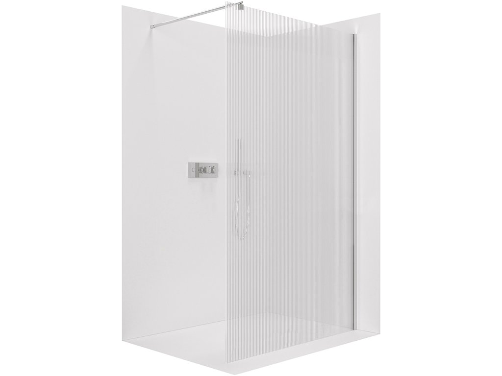 CERANO - Zuhanykabin Onyx kerek bal/jobb - 8 mm - kerek tartó - króm, rovátkolt üveg - 50x200 cm