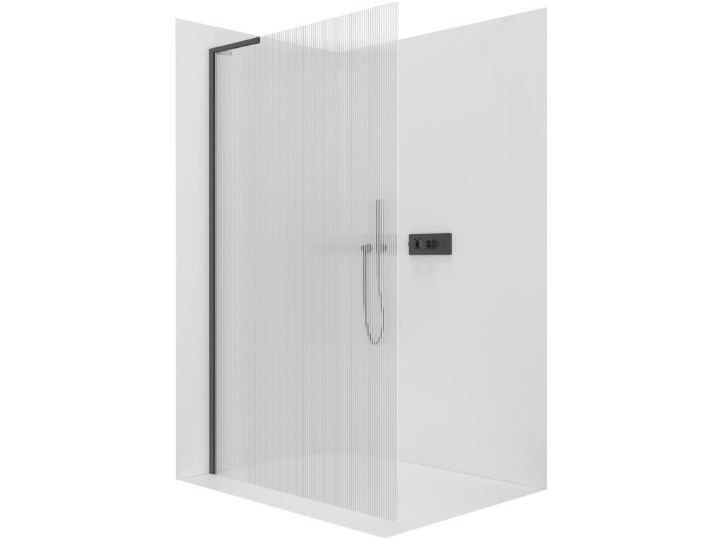 CERANO - Zuhanykabin Onyx L-bal merevítővel - 8 mm - matt fekete, rovátkolt üveg - 50x200 cm