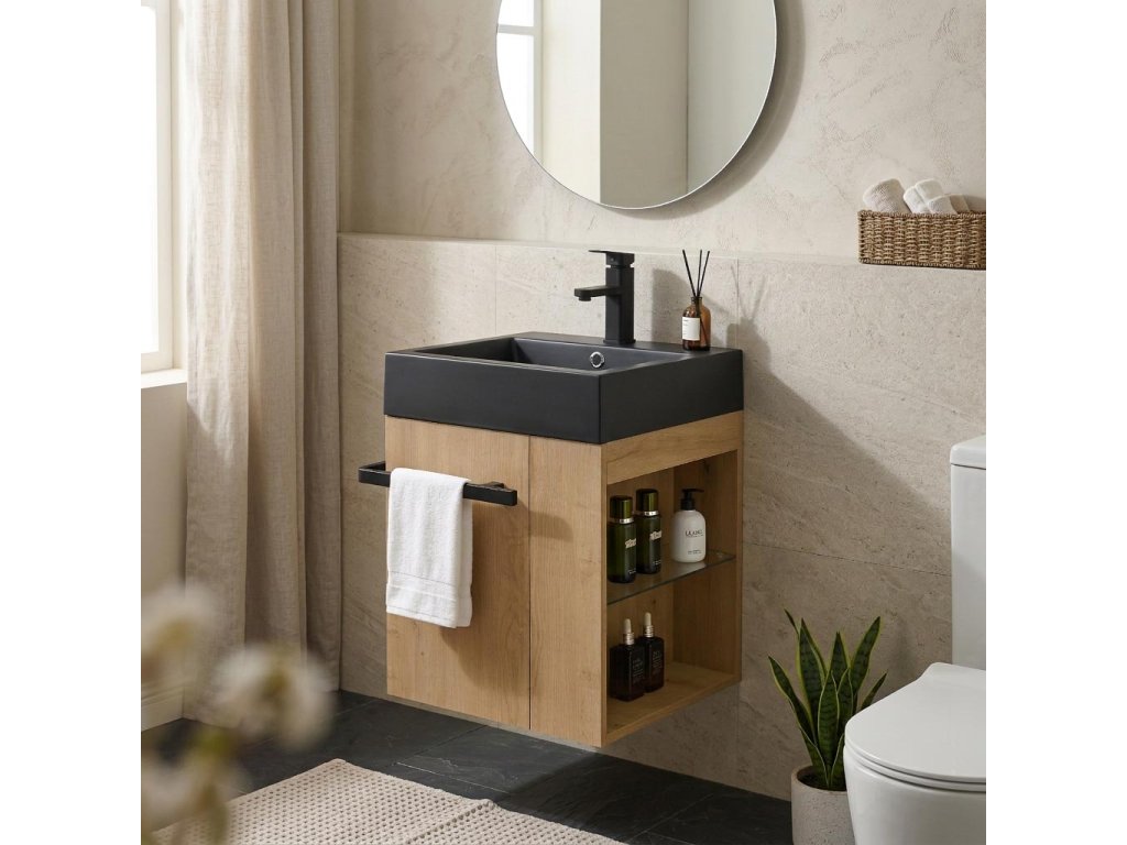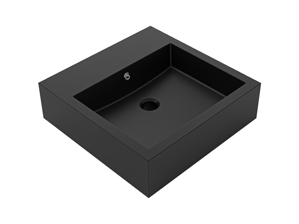 CERANO - Esme öntött márvány mosdó - túlfolyóval - matt fekete - 45x45x13 cm