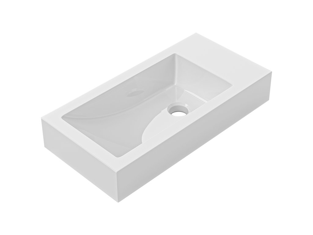 CERANO - Öntött márvány mosdó Sofia - túlfolyóval - fényes fehér - 50x25x8 cm