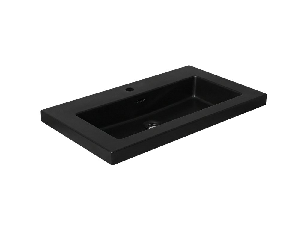 CERANO - Ovo öntött márvány mosdó - túlfolyóval - matt fekete - 70,5x46,3 cm