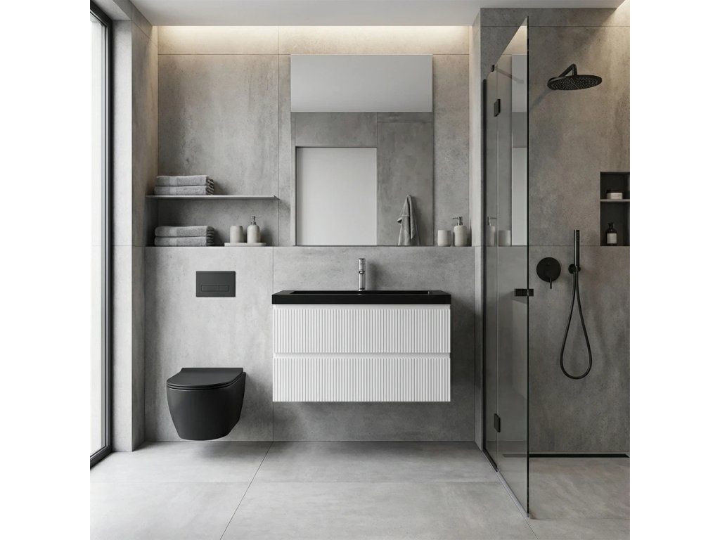CERANO - Ovo öntött márvány mosdó - túlfolyóval - matt fekete - 80,5x46,3 cm