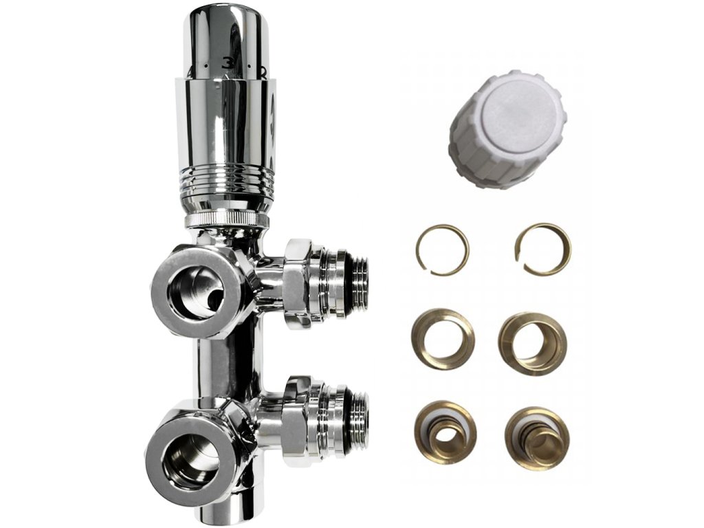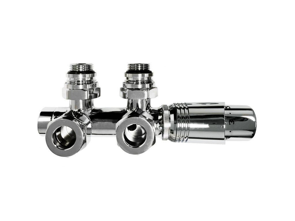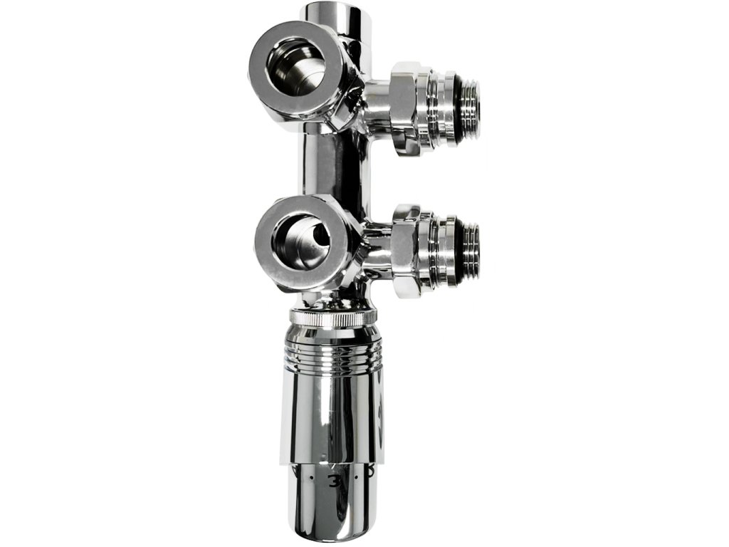Könnyű összeszerelés – minden egy helyen csatlakoztatható. - Termosztatikus fej csatlakoztatásának lehetősége (a duoplex szelep lehet termosztatikus vagy kézi ).