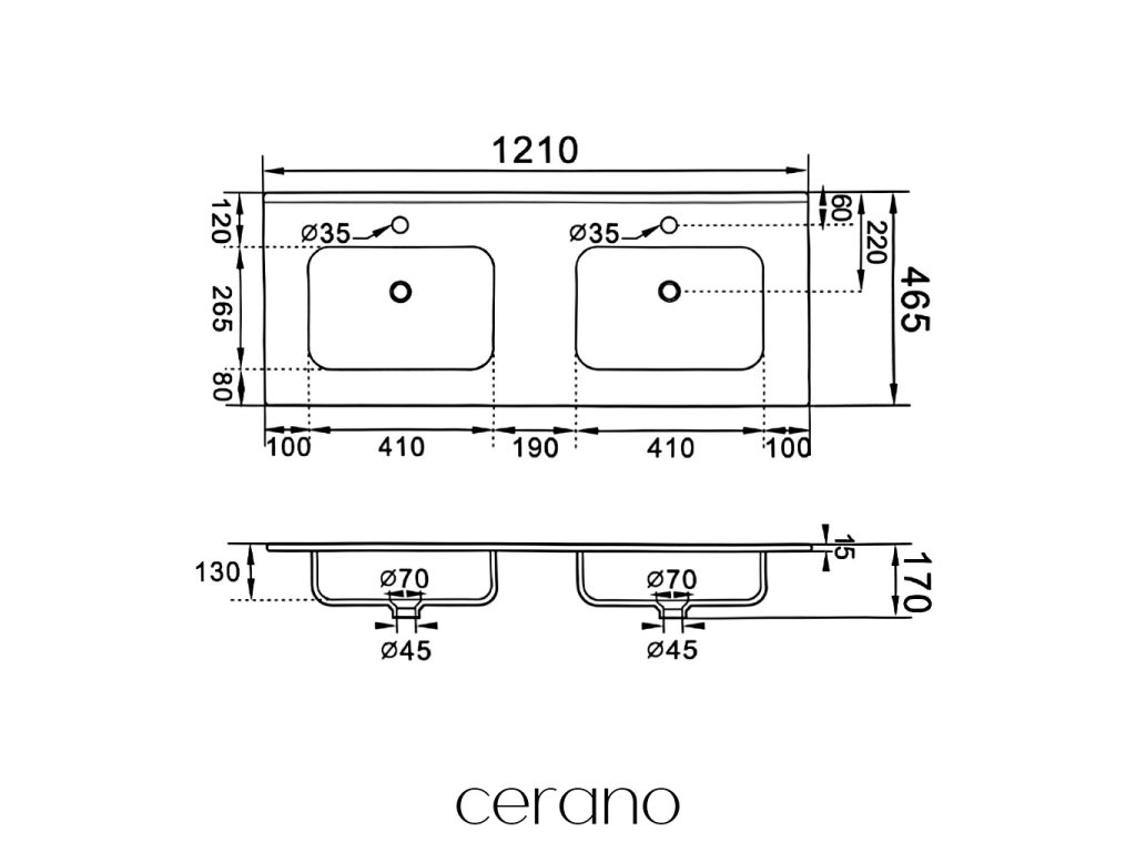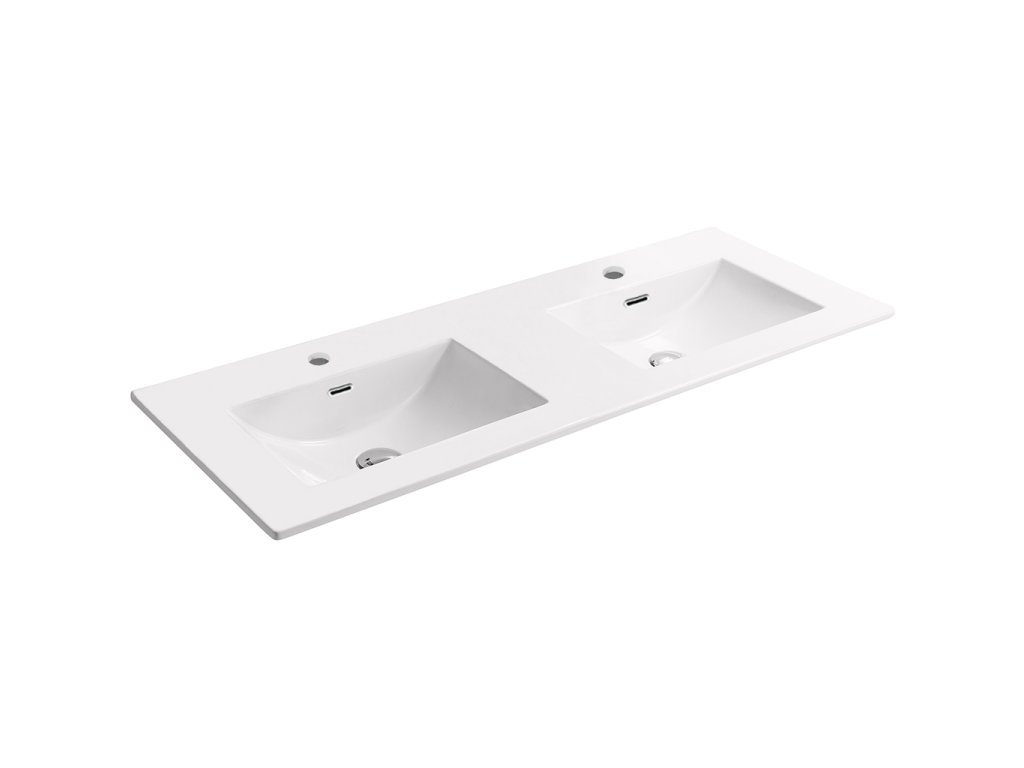 CERANO - Dupla kerámia mosogató Novo - bútor - fényes fehér - 121x46,5 cm