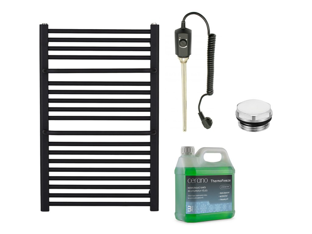 CERANO - Fürdőszobai elektromos radiátor szett Antonio - 300W - matt fekete - 860x550 mm