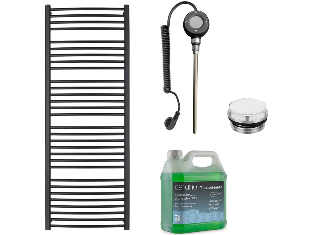 CERANO - Stefano fürdőszobai elektromos radiátor szett - WIFI - 600W - matt fekete - 1210x650 mm