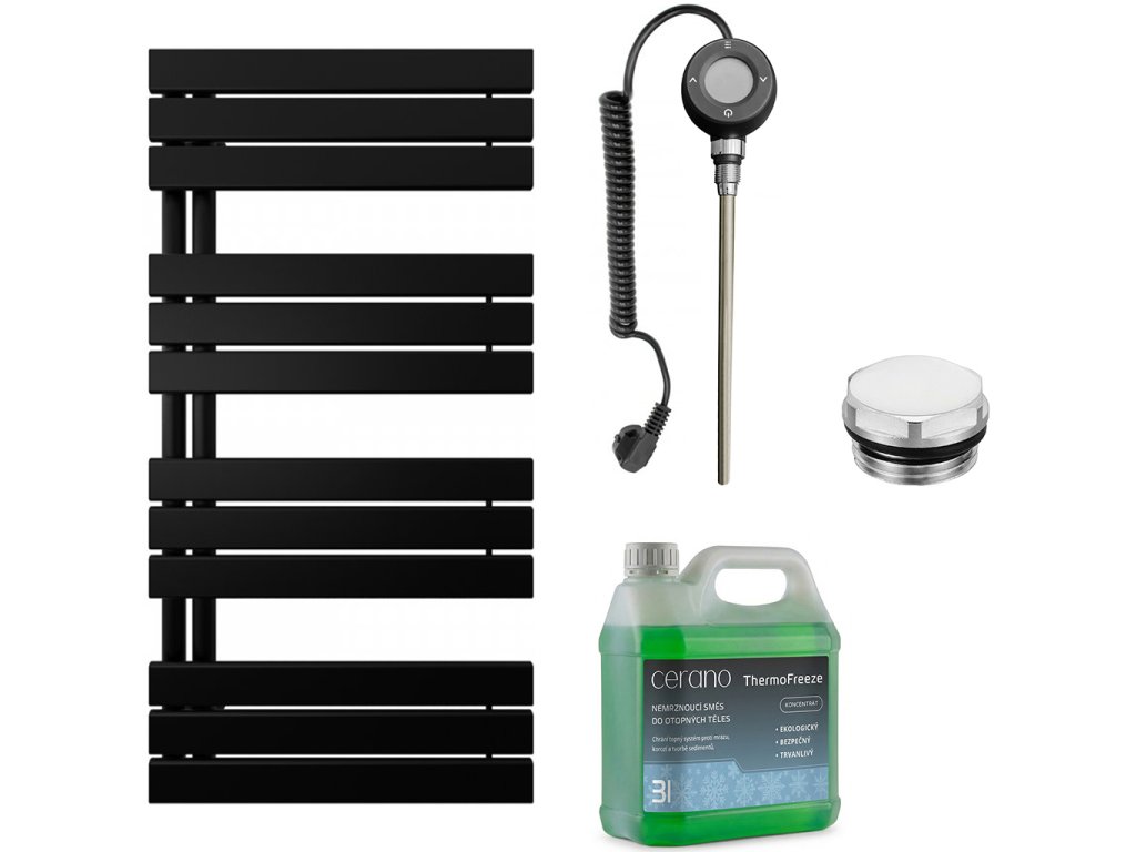 CERANO - Theo fürdőszobai elektromos radiátor szett - B/J - WIFI - 600W - matt fekete - 1200x500 mm