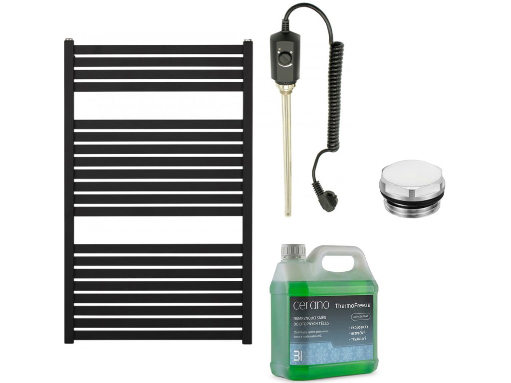 CERANO - Vincenzo fürdőszobai elektromos radiátor szett - 300W - matt fekete - 970x600 mm