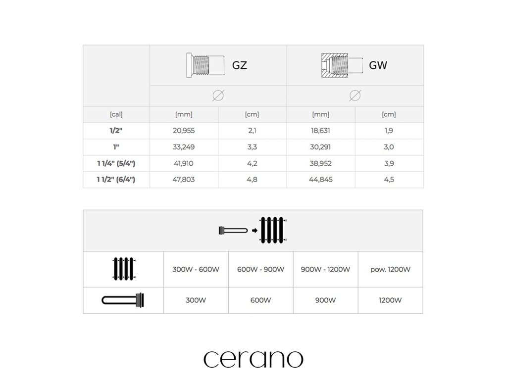 CERANO - Elektromos fűtőrúd termosztáttal 300W - fényes fehér