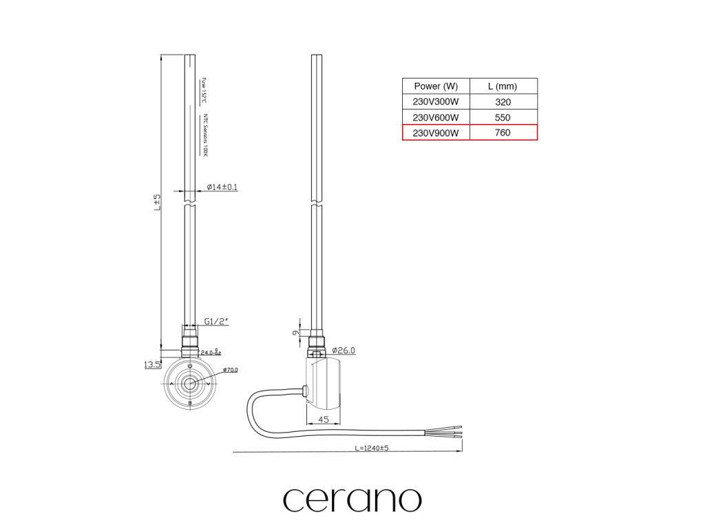 Elektromos fűtőrudak dizájn termosztáttal. Kerek kialakítás, minden típusú Cerano radiátorhoz alkalmas. A szimmetrikus kialakítás lehetővé teszi a radiátor bal vagy jobb oldalára történő felszerelést. A termosztát távolról is vezérelhető Wi-Fi kapcsolaton keresztül. Ennek a rendszernek köszönhetően a fűtési beállításokat akár otthonról is beállíthatja.