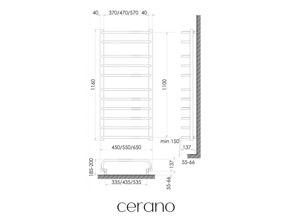 CERANO - Elektromos törölközőszárító Alessandro - 228 W - matt fekete - 1160x550 mm
