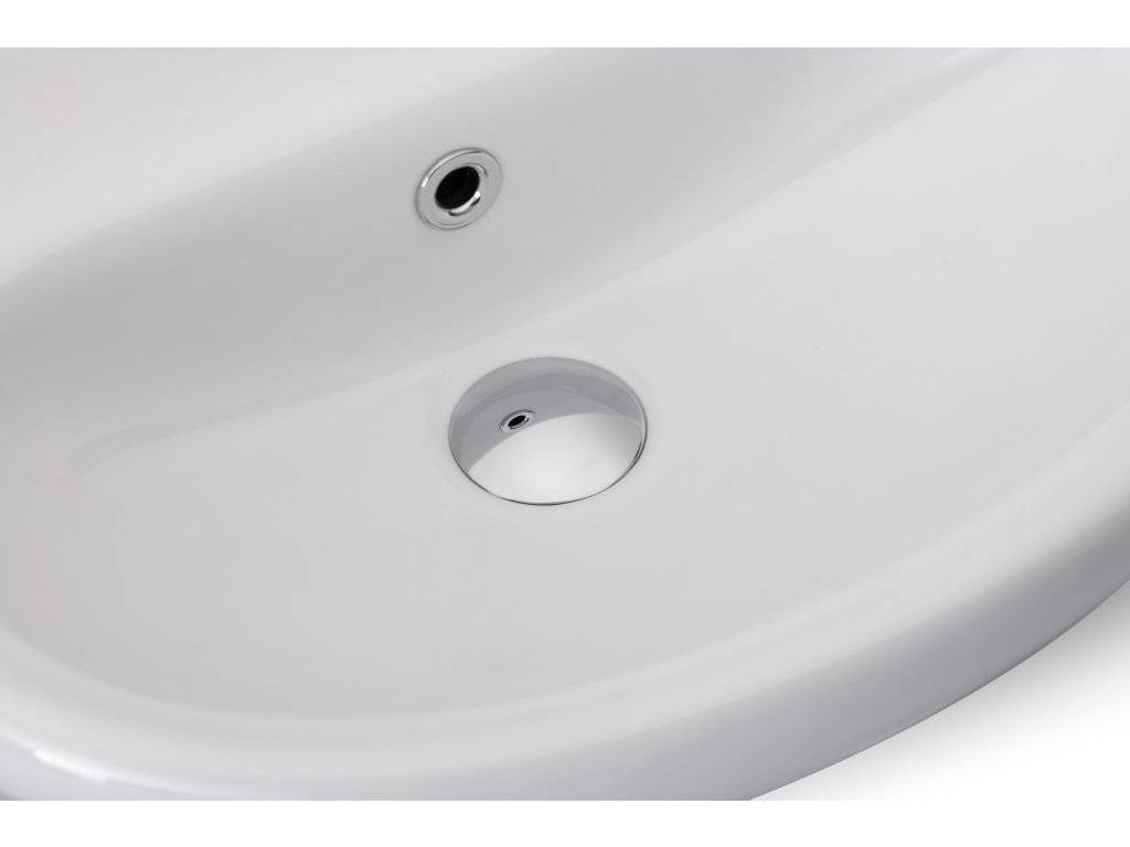 A mosogatón van egy lyuk a csaptelep beszereléséhez. Ez a kialakítás lehetővé teszi, hogy a csaptelep elegánsan süllyeszthető legyen közvetlenül a mosogatóba, ami ideális kisebb fürdőszobákba, mert jelentősen helyet takarít meg. Ugyanakkor megkönnyíti a mosogató körüli terület tisztán tartását, mivel nincsenek kiálló részek vagy illesztések, ahol a szennyeződés felhalmozódhatna.