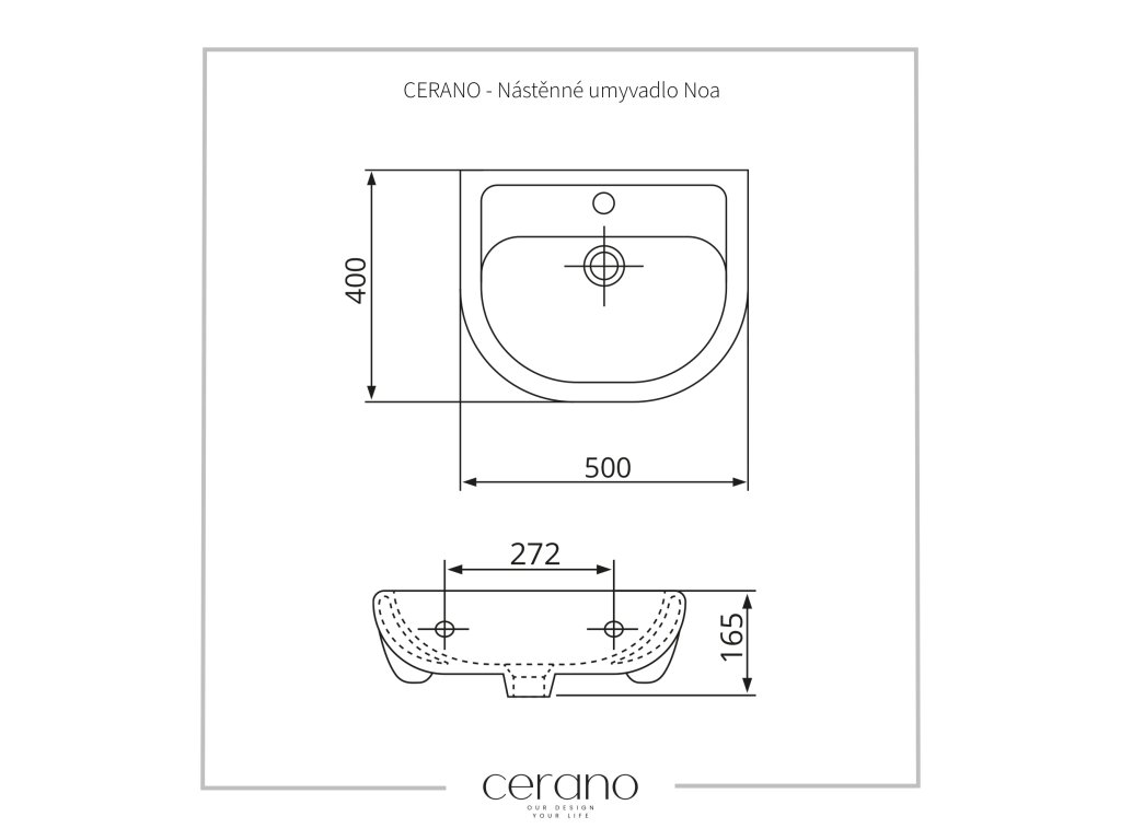 CERANO - Fali mosdó Noa - fényes fehér - 50x40 cm
