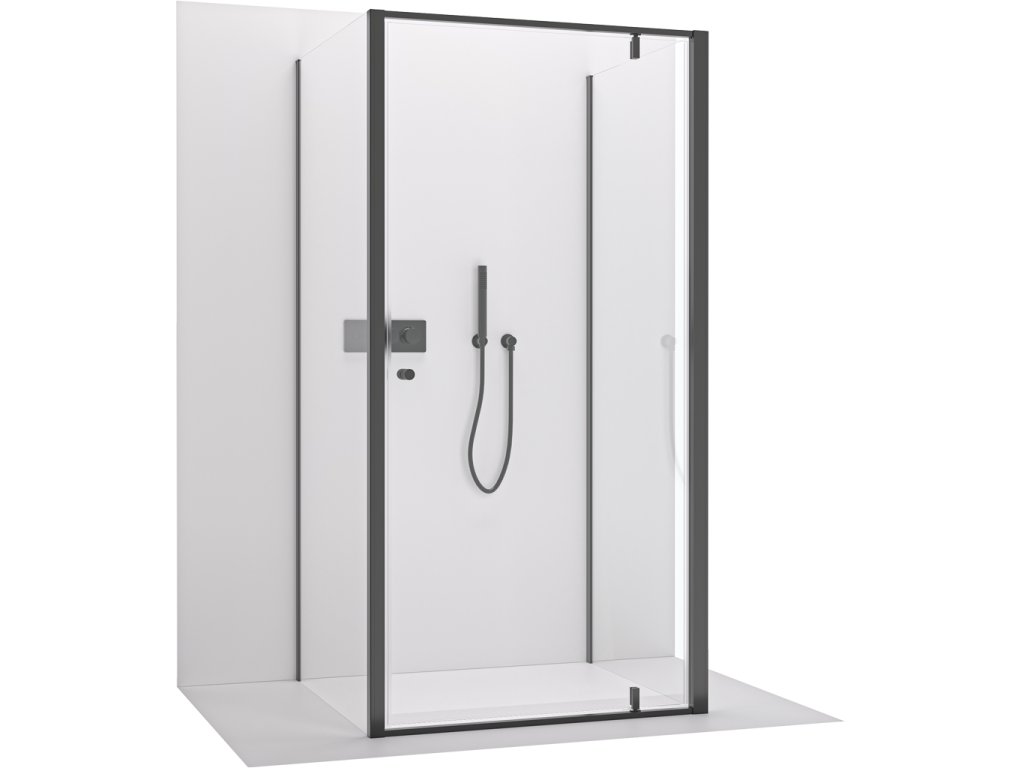 CERANO - Háromfalú zuhanykabin Ferri UL/P - 6 mm - matt fekete, átlátszó üveg - 100x90x195 cm - forgó