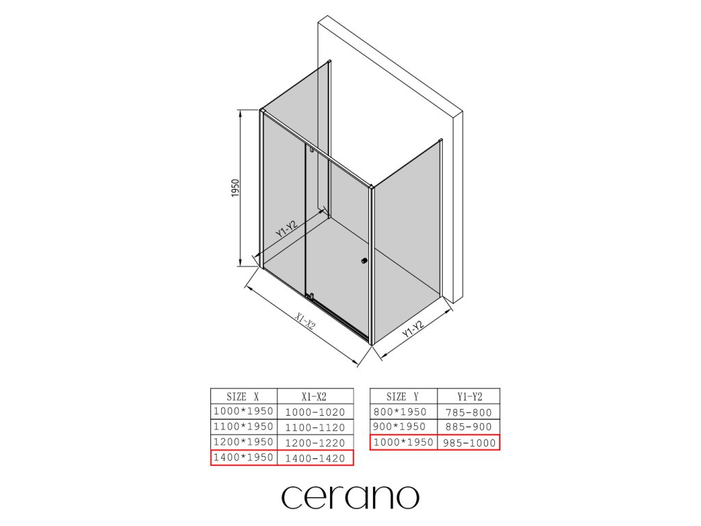Ezen a sorozaton belül széles méretválasztékot kínálunk, hogy kielégítsük ügyfeleink különböző igényeit. A legtöbb CERANO zuhanykabin, ajtó és paraván úgy van kialakítva, hogy kompatibilis legyen az azonos méretű CERANO zuhanytálcákkal , biztosítva a zökkenőmentes telepítést és a tökéletes illeszkedést.