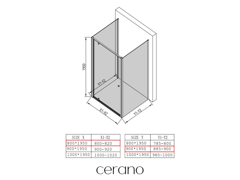 Ezen a sorozaton belül széles méretválasztékot kínálunk, hogy kielégítsük ügyfeleink különböző igényeit. A legtöbb CERANO zuhanykabin, ajtó és paraván úgy van kialakítva, hogy kompatibilis legyen az azonos méretű CERANO zuhanytálcákkal , biztosítva a zökkenőmentes telepítést és a tökéletes illeszkedést.