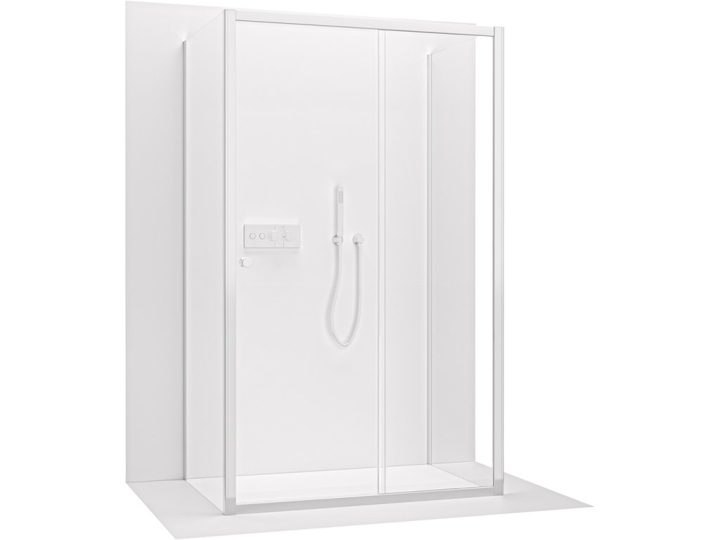 Az akár 40 mm-es tartományban állítható falprofilnak köszönhetően a zuhanyajtó könnyedén beállítható kisebb falegyenetlenségek vagy a szerkezeti nyílás eltérései esetén is. Ez az okos rendszer megkönnyíti a beszerelést és biztosítja az ajtó tökéletes illeszkedését. Az állítási lehetőség csak az ajtóra vonatkozik - a fix paraván rögzített méretben van felszerelve.