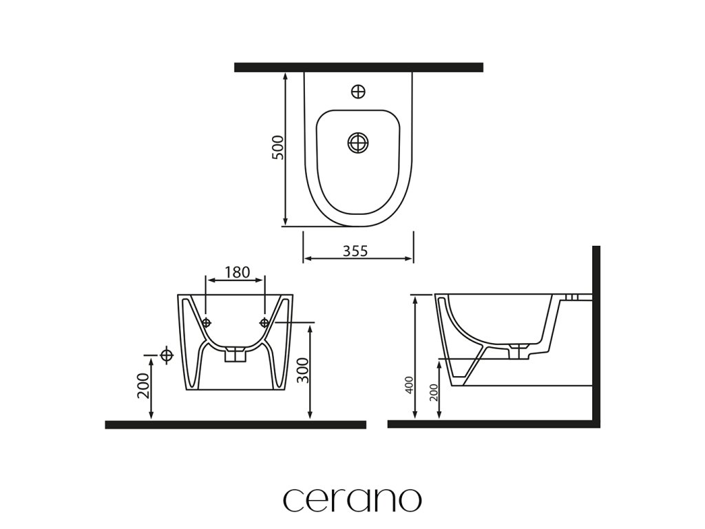 CERANO - Fali bidé Puerto - fényes fehér - 35x50 cm