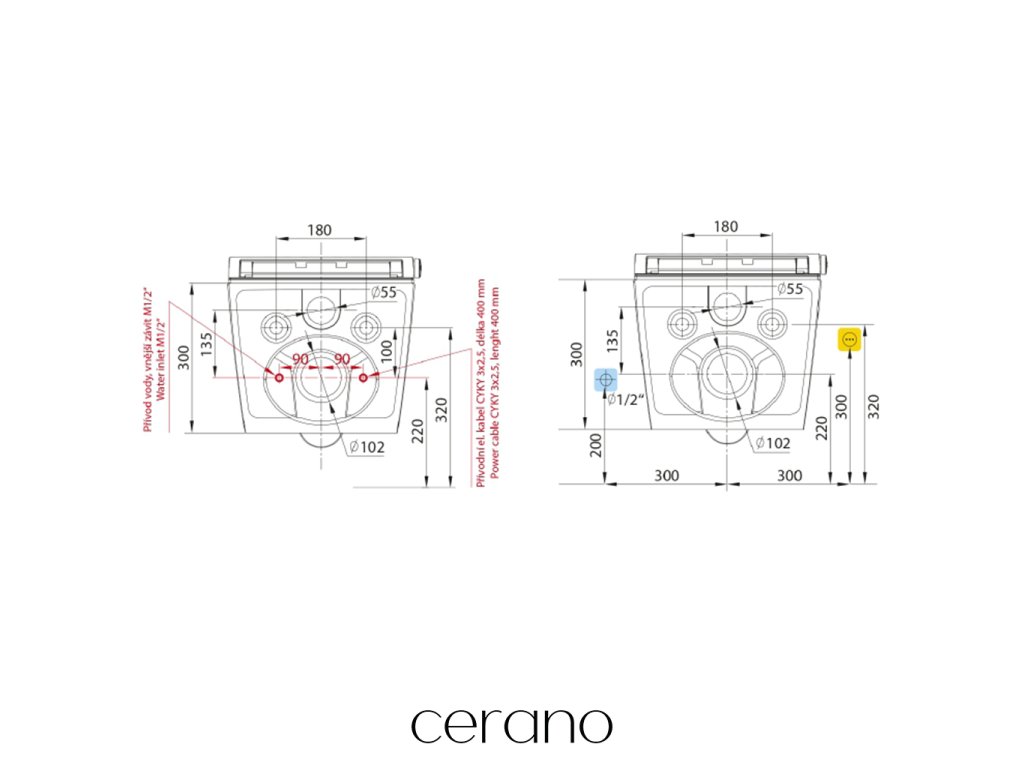 A Cerano fali WC-k univerzális méreteinek köszönhetően könnyen felszerelhetők. Kompatibilisek olyan ismert márkák rendszereivel, mint a Cerano, a Geberit, a Grohe és a Schwab. Ennek köszönhetően WC-nk gond nélkül beszerelhető a piacon kapható legtöbb beépítőkeretbe.