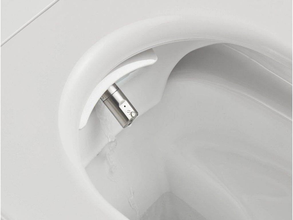Gyengéden tisztít meleg vízzel, oda-vissza mozdulatokkal. Az áramlás intenzitása és a hőmérséklet szükség szerint állítható. A fúvóka minden használat előtt és után automatikusan megtisztul, és használaton kívül biztonságosan elrejthető az ülőkében. Könnyen eltávolítható a kézi karbantartáshoz.