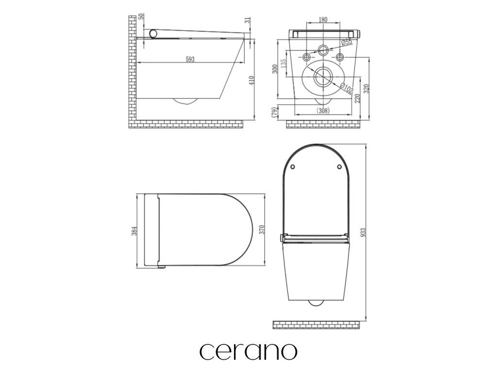 A Cerano fali WC-k könnyen felszerelhetők, és a szabványos rögzítési távolságnak köszönhetően kompatibilisek a Cerano modulokkal, valamint olyan márkák termékeivel, mint a Geberit, Grohe, Alcadrain, Jika, Tece stb.