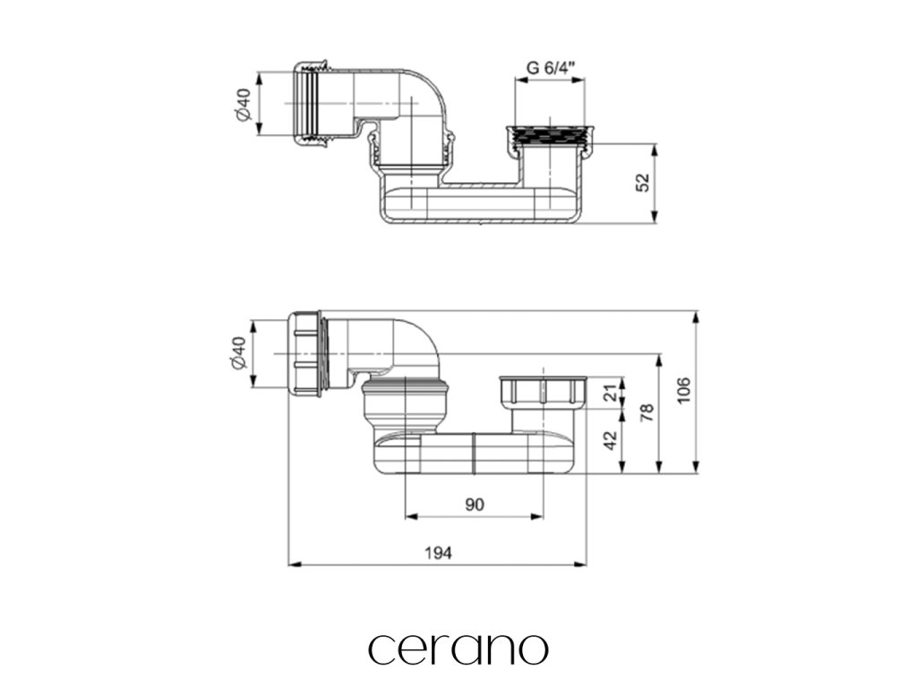 CERANO - Forgatható kádszifon - 6/4" - műanyag - DN40 - fehér