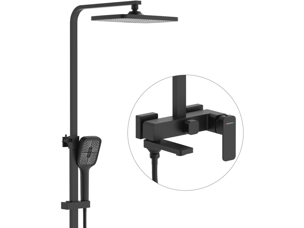 CERANO - Zenira fali zuhanyoszlop - kádhoz való forgócsaptelep - matt fekete