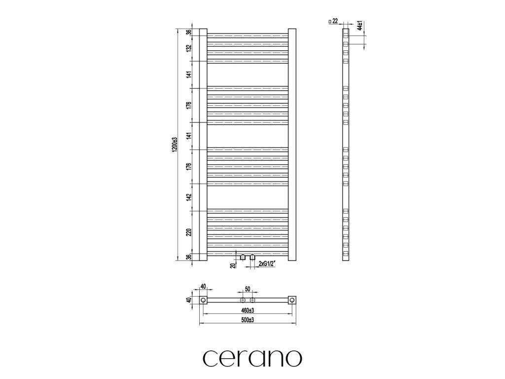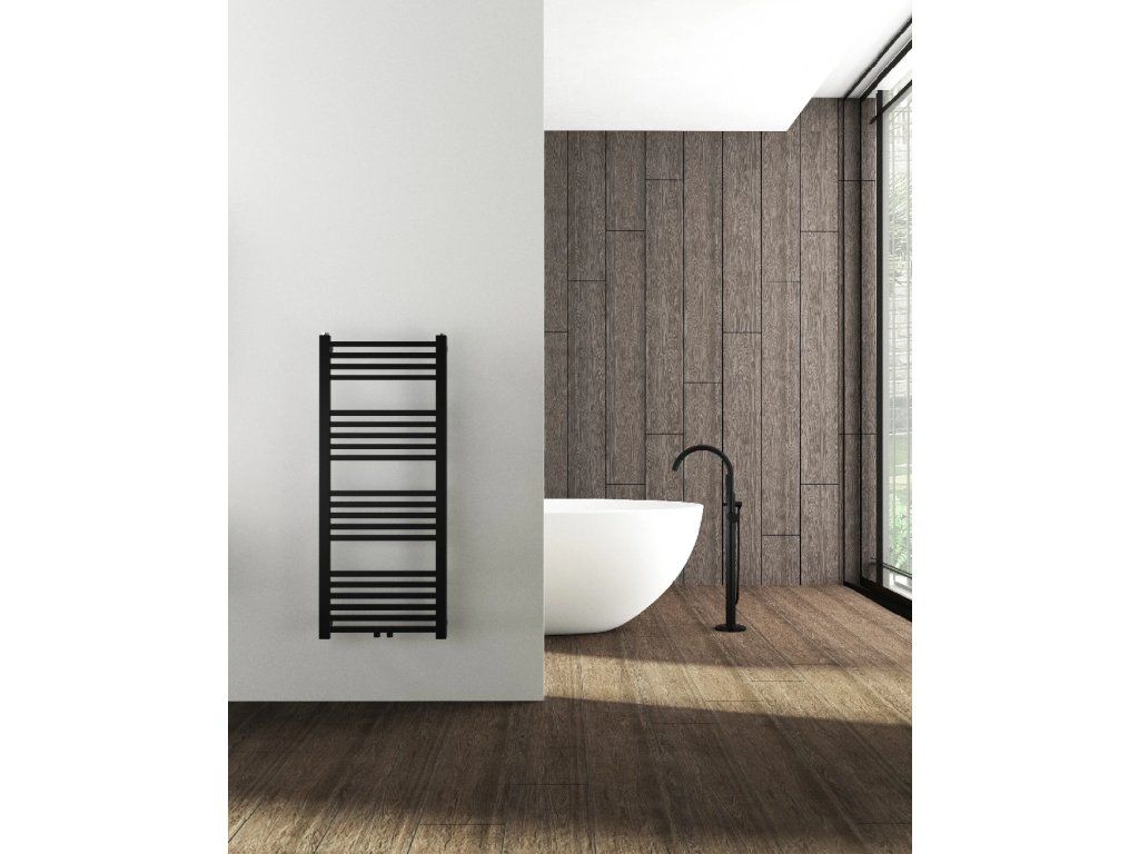 CERANO - Franko fürdőszobai radiátor - központi csatlakozás 50mm/oldalsó - 392W - matt fekete - 1200x500 mm