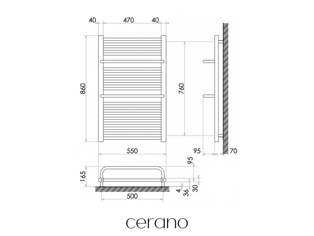 CERANO - Fürdőszobai radiátor Antonio - oldalsó csatlakozás - 484W - matt fekete - 860x550 mm