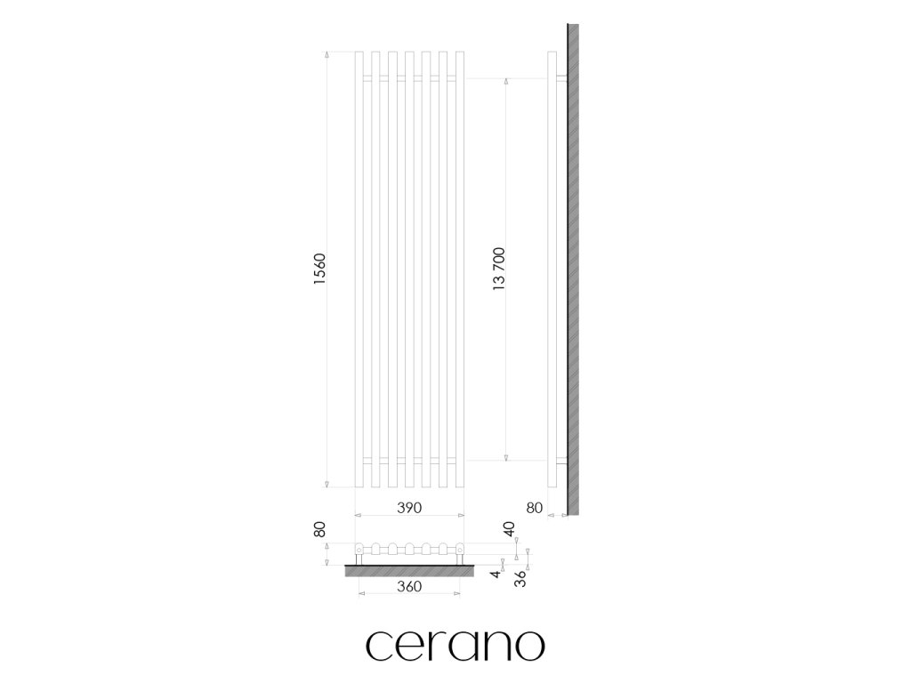 CERANO - Valerio fürdőszobai radiátor - oldalsó csatlakozás - 872W - matt fekete - 1560x390 mm