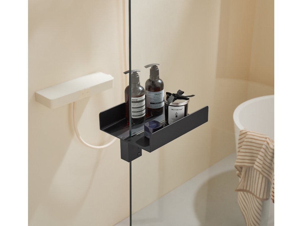 A praktikus, elegáns külső törölközőtartó és a belső polc ideális segítő minden beépített zuhanykabinhoz. Minden olyan zuhanykabinhoz használható, amelynek maximális üvegvastagsága 8 mm. Ideális megoldás minimalista fürdőszobákba, ahol könnyedén megoldja a kozmetikai termékek, kisebb berendezések elhelyezésének, valamint a törölközők és fürdőlepedők felakasztásának problémáját, így minden azonnal kéznél van.