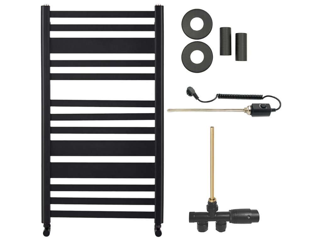 CERANO - Enrico fürdőszobai radiátor szett - kombinált fűtéssel, termosztáttal - oldalsó egypontos csatlakozással - 467W - matt fekete - 970x500 mm