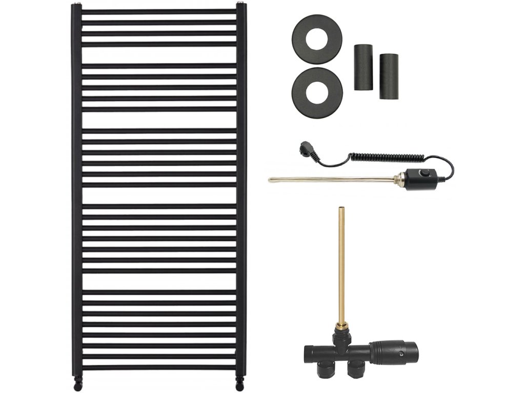 CERANO - Alberto fürdőszobai radiátor szett - kombinált fűtéssel, termosztáttal - oldalsó egypontos csatlakozással - 857W - matt fekete - 1380x650 mm