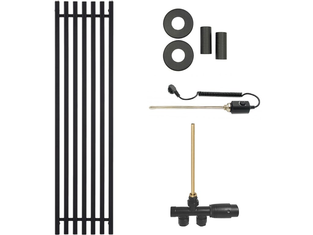 CERANO - Francesco fürdőszobai radiátor szett - kombinált fűtéssel, termosztáttal - oldalsó egypontos csatlakozással - 872W - matt fekete - 1500x390 mm