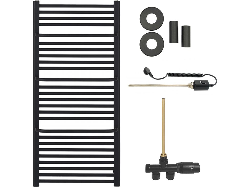 CERANO - Fürdőszobai radiátor szett Antonio - kombinált fűtéssel, termosztáttal - oldalsó egypontos csatlakozással - 857W - matt fekete - 1460x550 mm