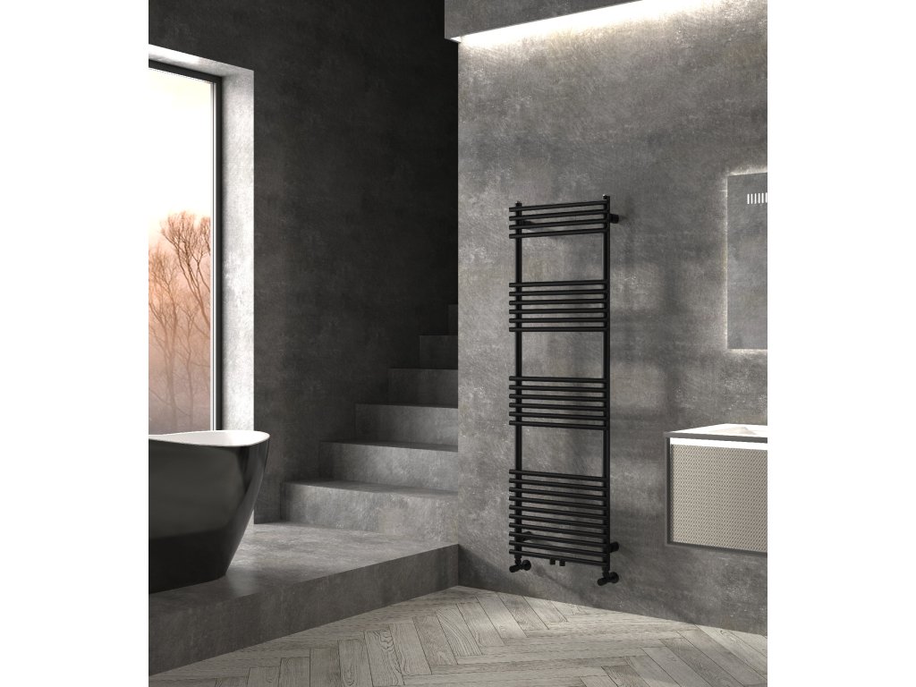 CERANO - Luigi fürdőszobai radiátor szett - kombinált fűtéssel, termosztáttal - központi csatlakozással 50 mm - 713W - matt fekete - 1600x500 mm