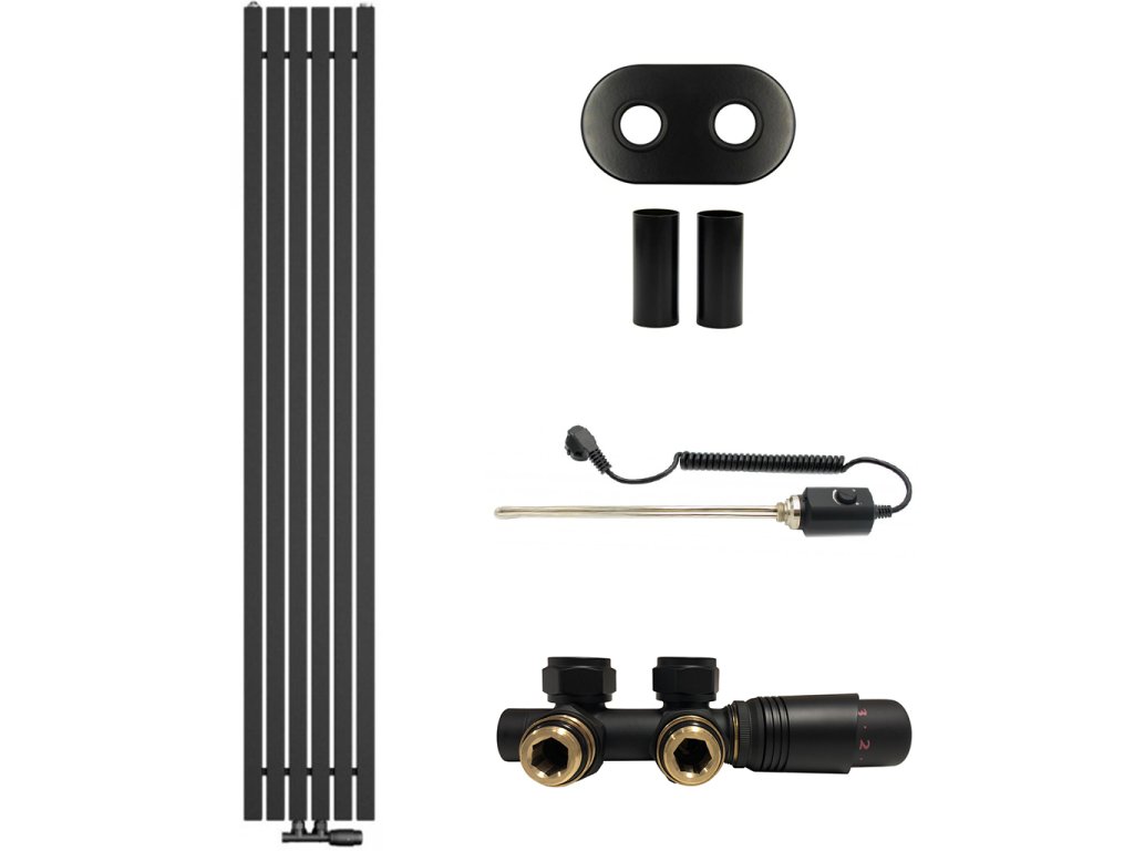 CERANO - Pyricus fürdőszobai radiátor szett - kombinált fűtéssel, termosztáttal - központi csatlakozással 50 mm - 721W - matt fekete - 1800x290 mm