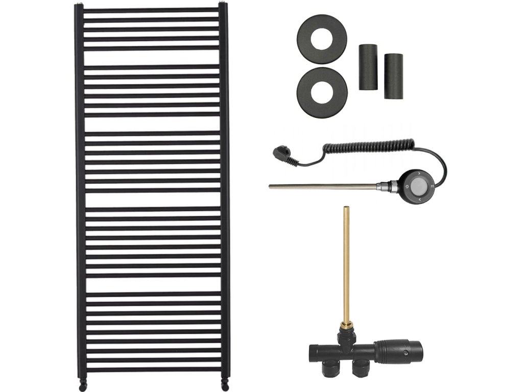 CERANO - Alberto fürdőszobai radiátor szett - kombinált fűtéssel, wifi rúddal - oldalsó egypontos csatlakozással - 999W - matt fekete - 1660x650 mm