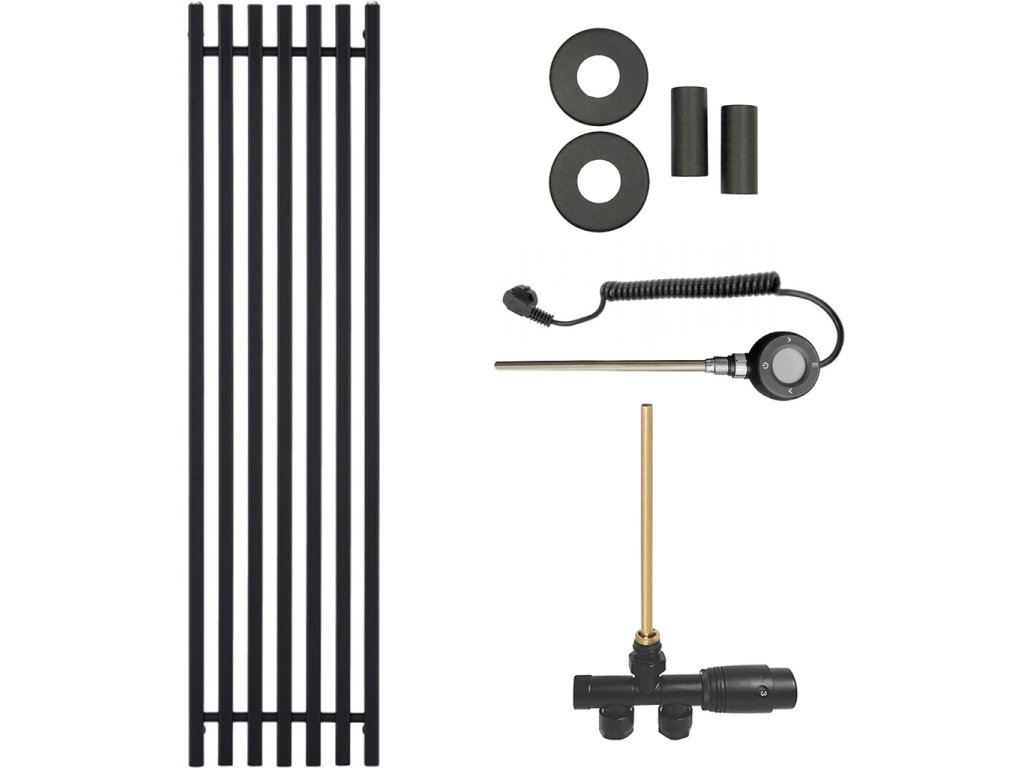 CERANO - Francesco fürdőszobai radiátor szett - kombinált fűtéssel, wifi rúddal - oldalsó egypontos csatlakozással - 872W - matt fekete - 1500x390 mm