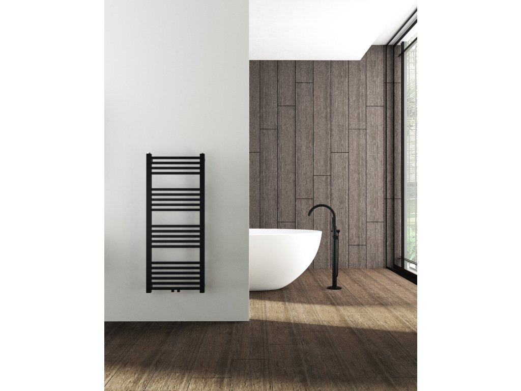 CERANO - Franko fürdőszobai radiátor szett - kombinált fűtéssel, wifi rúddal - központi csatlakozással 50 mm - 392W - matt fekete - 1200x500 mm