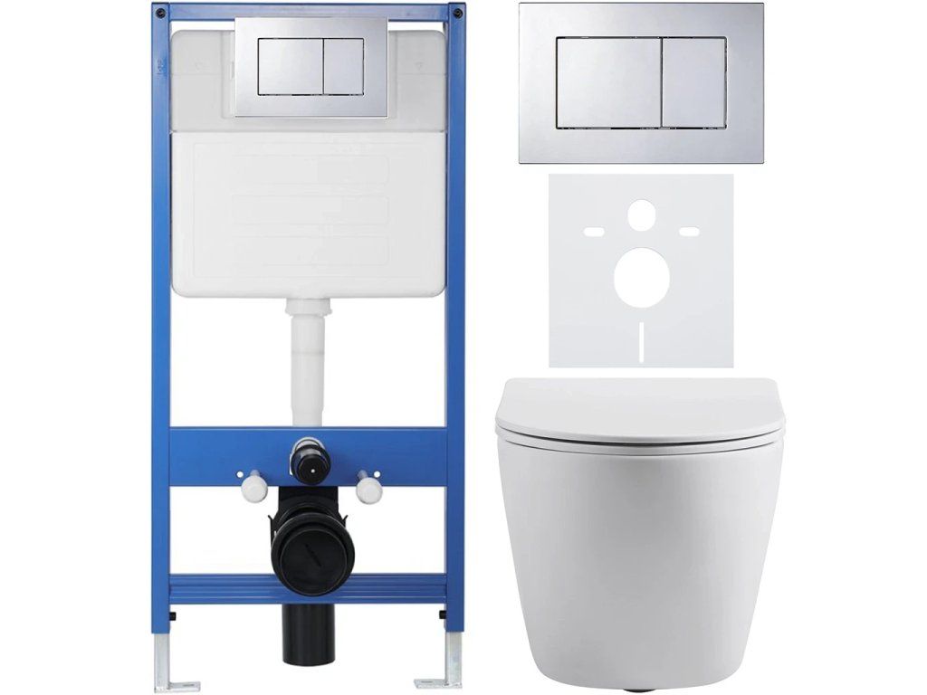 CERANO - Komplett falsík alatti WC-szett Lite/Cesso - matt fehér - Klasszikus WC-gomb, króm - falsík előtti/gipszkarton - 49x36 cm