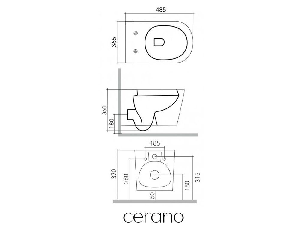 A Cerano fali WC-k könnyen felszerelhetők, és a szabványos rögzítési távolságnak köszönhetően kompatibilisek a Cerano modulokkal, valamint olyan márkák termékeivel, mint a Geberit, Grohe, Alcadrain, Jika, Tece stb.