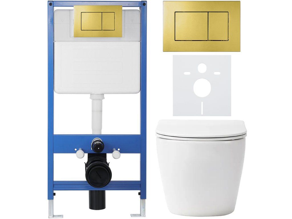 CERANO - Komplett falsík alatti WC-szett Lite/Verde - fényes fehér - Klasszikus WC-gomb, arany - falsík előtti/gipszkarton - 49x36 cm