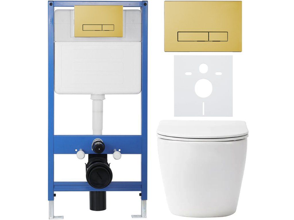CERANO - Komplett falsík alatti WC-szett Lite/Verde - matt fehér - Slim WC-nyomógomb, arany - falsík előtti/gipszkarton - 49x36 cm