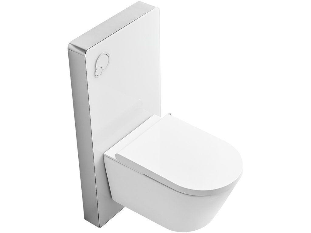A modul megkönnyíti a fali WC beszerelését. A kész modul beszerelése egyszerű és gyors. A keret alumíniumból, az előlap pedig 8 mm vastag edzett üvegből (ESG) készült. A beépített tartály nagy és kis öblítéshez gombokkal ellátott (gyárilag 3/6l - a vízmennyiség 2,4 és 3,5 liter / 4,8 és 7,4 liter között állítható) tartós szigeteléssel rendelkezik a páralecsapódás ellen. Az öblítés könnyen aktiválható a panelen található gombokkal. A szaniter modul felülete nem porózus, könnyen tisztítható és tökéletesen higiénikus.
