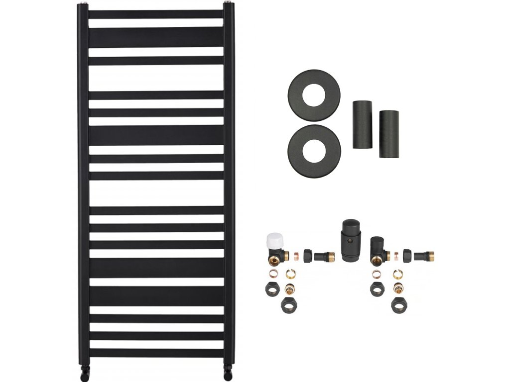 CERANO - Enrico fürdőszobai radiátor szett - központi fűtés - oldalsó csatlakozás - 559W - matt fekete - 1210x550 mm