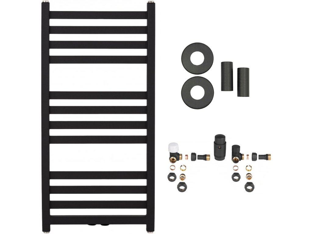 CERANO - Fulgidus fürdőszobai radiátor szett - központi fűtés - oldalsó csatlakozás - 503W - matt fekete - 880x430 mm
